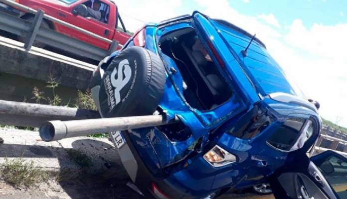 El vehículo se dirigía hacia Corrientes y producto del impacto, el caño ingresó por el frente de la EcoSport y salió por la parte de atrás, provocando lesiones en las piernas del automovilista.