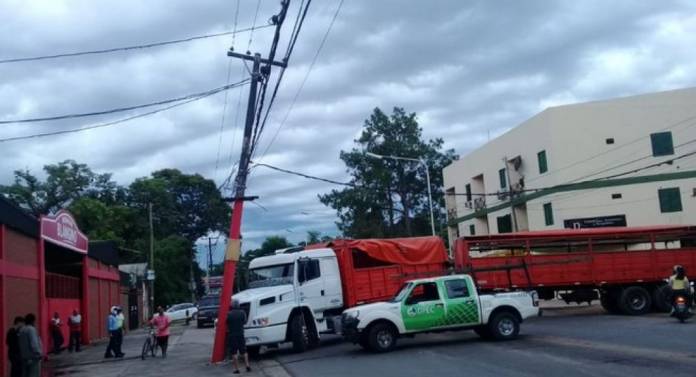 El hecho tuvo lugar este mediodía en la intersección de avenida Maipú e Ita Ibaté. El camión de gran porte de marca Mercedez Benz, tras una mala maniobra, impactó de lleno contra un poste y afectó el servicio de energía.