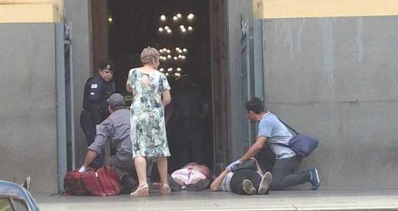 Imágenes de la televisión mostraron a los paramédicos asistiendo a varias personas a las puertas de la catedral y varios coches de la policía en la calle. Una fotografía mostraba el cuerpo del tirador, vestido con jeans y una camiseta azul, yaciendo en el interior de la catedral con una pistola en su mano derecha.