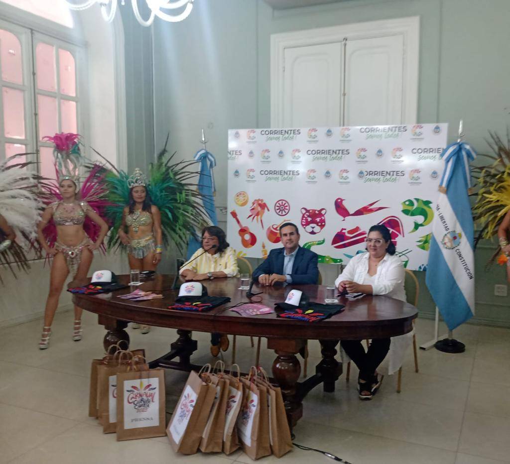 Encabezaron la presentación el intendente de Curuzú Cuatiá, José Irigoyen; la directora de Turismo y Cultura de la Municipalidad, María Virginia Rodríguez Talamona; y la gerenta de Alma Producciones, empresa organizadora de dicho Carnaval, Graciela Borré, entre otras autoridades provinciales y comunales. Esta última comentó que “estamos trabajando desde el 2018, cuando teníamos un carnaval chico en esta localidad, hasta que el intendente tomó el desafío de hacer grande esta fiesta”, a lo que agregó: “Es así que nos animamos al desafío y terminamos en el 2020 con un carnaval de 8000 personas por noche”.