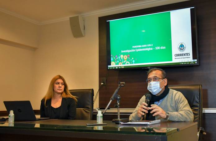 El Gobierno provincial a través de la directora general de Epidemiología, Angelina Bobadilla, presentó este viernes un balance con datos estadísticos y exactos acerca de la situación actual en el marco de la lucha contra la pandemia del Coronavirus. De esta manera, el ministro de Salud Pública, Ricardo Cardozo, aseguró que a partir de esa información se puede asegurar que “los resultados en Corrientes desde el punto de vista epidemiológico son alentadores”, pero aclaró que igualmente “esto no pasó, así que estamos atentos y seguimos trabajando”.Cardozo adelantó que la intención de la conferencia de prensa a la que se convocó en la Sala de Situación del Ministerio de Salud, es “mostrar los distintos actores que intervinieron y siguen interviniendo en esta lucha contra la pandemia. Queremos que la población tenga la seguridad y tranquilidad de que existe un equipo coordinado desde el Ministerio de Salud Pública, en este caso la directora de Epidemiología con un grupo que depende de ella, que conforman el Comité de Crisis”.Respecto al trabajo que se viene realizando desde el área, indicó que “una herramienta fundamental es el seguimiento y la trazabilidad de los pacientes. Cada vez que se detecta un sospechoso o un positivo a través de nuestro call center, que también es un elemento central en la organización del equipo, se genera toda una cadena de tareas desde el área de epidemiología, con todo el recurso humano que ella tiene, que van desde el hisopado, el aislamiento, o cuando no aplica hacer el hisopado igual se recurre al aislamiento riguroso y el seguimiento de ese paciente”.Contó que “es una tarea ardua, que lleva tiempo, profesionales y que lleva rigurosidad, porque cada vez que se nos escape un contacto o un sospechoso, que ande por la sociedad diseminando virus, es un fracaso de nuestro sistema”. Y agregó que si bien se dice que “estamos tranquilos, sin embargo no lo estamos, porque las tareas continúan cotidianamente con un sinnúmeros de casos sospechosos que la población o la prensa no se entera, pero que existen todos los días y a toda hora”.Situación en CorrientesLa directora general de Epidemiología de la Provincia, Angelina Bobadilla, realizó un repaso sobre la investigación epidemiológica de la pandemia y el tratamiento de cada uno de los casos de Covid-19 en Corrientes, desde el inicio de la cuarentena hasta ahora. Primeramente, la referente se refirió al seguimiento de las enfermedades respiratorias anuales que se presentan en estas épocas invernales, lo cual dijo que “hemos tenido un notable descenso de bronquiolitis y neumonías, donde no presentamos muertes hasta el momento ocasionadas por estas patologías como lo fue en años anteriores”.“La curva está en descenso debido a las medidas tomadas en el marco de la pandemia, permitiéndonos estar más preparados con las internaciones y recursos materiales pertinentes para los casos con mayores complicaciones”, resaltó. Por otro lado, Bobadilla precisó en su discurso las cifras a nivel mundial, diciendo que “más de 9 millones de víctimas arrojó el Covid-19 y en Argentina sigue en crecimiento los casos de manera lenta, con un muy buen control de la pandemia, donde en Corrientes hasta la fecha se presenta 116 casos con un total de 102 recuperados, en el cual el diagnóstico temprano e internación requerida de los casos, ha reducido la tasa de mortalidad a 0”.A su vez, destacó el inicio de los casos en la Provincia, donde “hemos tenido un solo pico de casos que fueron los 23 positivos en la Unidad Penal N°1” y agregó “los primeros casos detectados recordemos vinieron del exterior, y por el otro lado, el gran porcentaje de casos han sido asociados a los provenientes de Chaco –provincia que cuenta con transmisión comunitaria-”. En la oportunidad, también hizo hincapié en los rangos de las edades de los casos detectados donde “los mayores de 65 años han contado con un procedimiento riguroso, constante y diario para que las complicaciones no culminen en mayores complicaciones”.“En el caso de los menores de 50 años rondaron en un 75% de personas, 16% entre 50 y 59 años y mayores de 59 años 9%; en estos porcentajes predominan en su mayoría las personas masculinas, teniendo en cuenta que la variabilidad de síntomas fueron en un 80% fiebre y el resto presentaron síntomas de tos seca que puede pasar desapercibida como cefalea o congestiones”, recalcó Bobadilla.Ante los casos que fueron descartados, explicó que “se realiza un seguimiento constante para proceder a que los descartados sean denominados como tal, por eso resaltamos que el aislamiento es fundamental” y acotó que “hemos realizado 8792 muestras procesadas de las cuales 116 fueron confirmadas, con 14 activos en la actualidad”.Tareas realizadas mes a mes“Al comienzo de la pandemia en el mes de marzo junto a un gran equipo de trabajo se desempeñó un despliegue sanitario en cada uno de los casos detectados y hemos actuado aislándolos a cada uno de los que fueron ingresando desde el exterior, contando con el seguimiento pertinente y cumplimiento con la cuarentena obligatoria tomando todas las acciones adecuadas para que el virus no circule”, relató en referencia a los primeros casos detectados en la Capital.Seguidamente, recordó que en abril “hemos tenido la detección de los casos todos asociados a la Unidad Penal N°1, arrojando un total de 23 personas, donde el contacto de un penitenciario con una persona privada de libertad fue el disparador del brote, que hemos podido detectar a tiempo y controlar para que no se trasmita a otros pabellones”.A esto le siguió los casos detectados en el barrio San Marco, a partir del caso confirmado por el personal de salud que se desempeña en el Chaco, lograron que el virus se cierre en el círculo familiar, que no necesitaron de internación en ningún momento “donde la familia fue aislada desde el prim