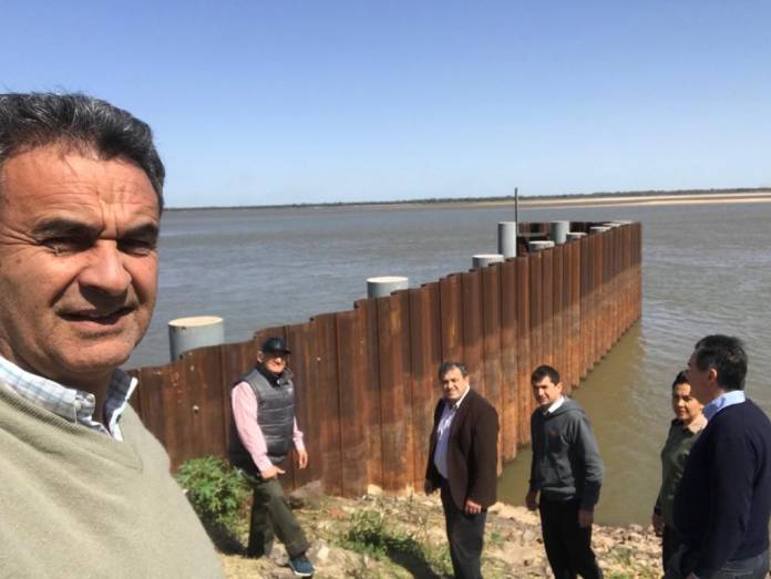 Profesionales del Instituto Correntino del Agua y del Ambiente (ICAA) y Concejales de la localidad de Lavalle inspeccionaron los arreglos solicitados a la empresa contratista ante la detección de faltantes de varillas roscadas con los respectivos bulones en uno de los seis espigones de la obra de Defensa sobre el Río Paraná, financiada en su totalidad por el gobierno nacional en el marco del Plan Belgrano – Plan Nacional del Agua.