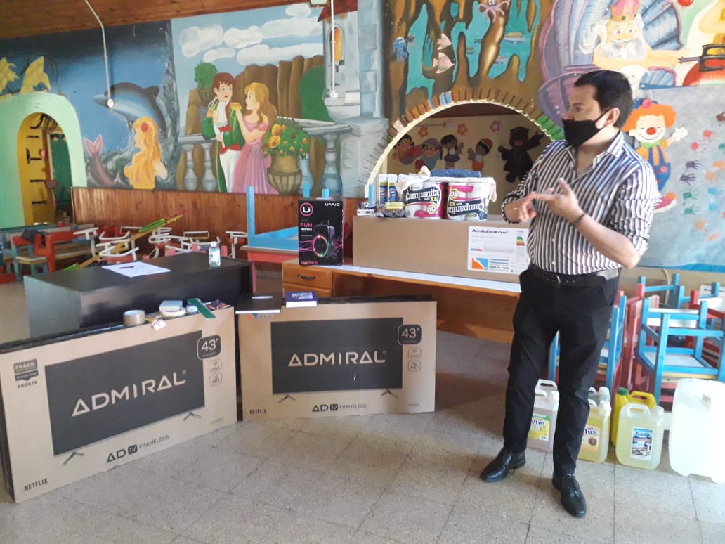 En la localidad de Santa Rosa, en el Centro de Desarrollo Infantil María de Nazareth se hizo entrega de Smart TV ,split, parlante portátil con micrófono , mesitas , sillitas de niños y escritorio.