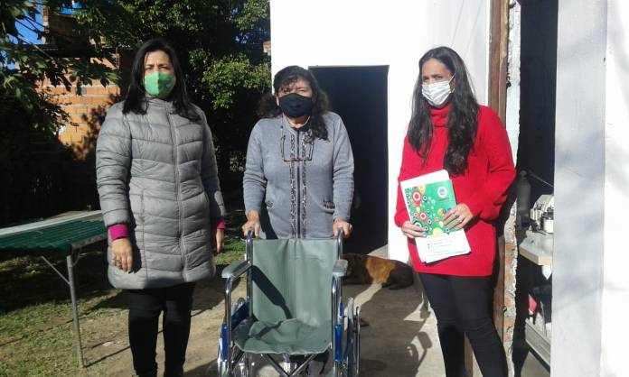 La Subsecretaría Esc. Andrea Giotta en un trabajo articulado con la Directora de COPRODIS Prof. Roxana Tannuri , realizó entrega de una silla de ruedas a la familia Monzón del barrio San Jorge.