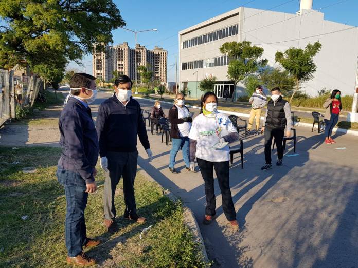 El Gobierno provincial a través del Ministerio de Desarrollo Social continúa colaborando con la sanitización en la ciudad de Corrientes, en el marco de la Emergencia Sanitaria por la pandemia de Coronavirus. Fue así que este viernes la Dirección General de Participación Social y Abordaje Territorial, a cargo de Alfredo González, llevó a cabo un operativo en ese sentido en forma conjunta con líderes comunitarios, personal del Ministerio de Salud Pública, la Municipalidad y el Banco de Corrientes, mientras este último atendía al público en el barrio San Marcos.