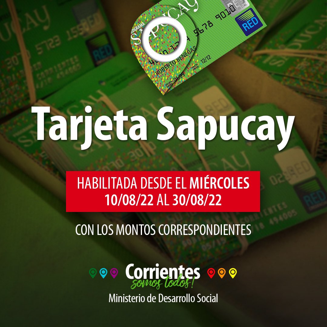 El Ministerio de Desarrollo Social informa a los beneficiarios del Programa que las Tarjetas Sapucay desde este miércoles 10 estarán habilitadas hasta el 30 de Agosto.