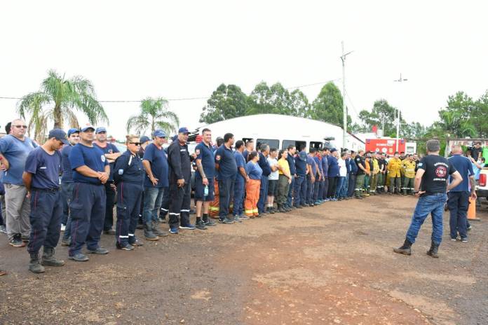 “Esto es un antes y un después”, afirmó este viernes el intendente de Santo Tomé, Augusto Suaid, en un emotivo encuentro en el Centro de Operaciones Zonales donde confluyen fuerzas de toda la Argentina y Brasil para combatir los incendios de gran magnitud que se dieron en la región y que en menor medida todavía persisten. Pasado el mediodía, a pocos kilómetros de la ciudad fronteriza al borde de la Ruta Nacional 14 se realizó un balance con todas las formaciones de brigadistas y bomberos y allí el jefe comunal sostuvo que “esto demuestra que si trabajamos todos juntos podemos tener un país mejor”, agradeciendo la gran ayuda venida de los más diversos y alejados lugares. Se manifestaron así distintos representantes mientras intercambiaban banderas, con las cenizas sobre sus uniformes, lágrimas en los ojos y gotas de lluvias que cayeron al tiempo que sonaban las sirenas de decenas de autobombas.
