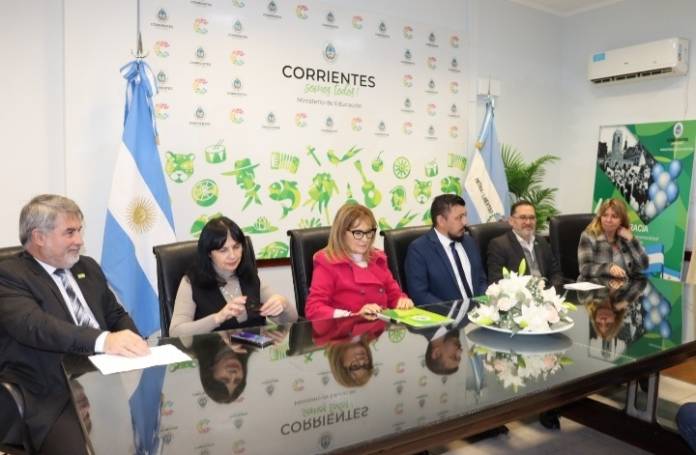 La ministra de Educación Práxedes López y el intendente de Chavarría Juan Ramón Mazzoli, firmaron esta mañana un convenio de tenencia precaria de un colectivo. La unidad deberá ser utilizada exclusivamente para el servicio de transporte de alumnos que cursan estudios en los niveles inicial, primario, secundario y superior.