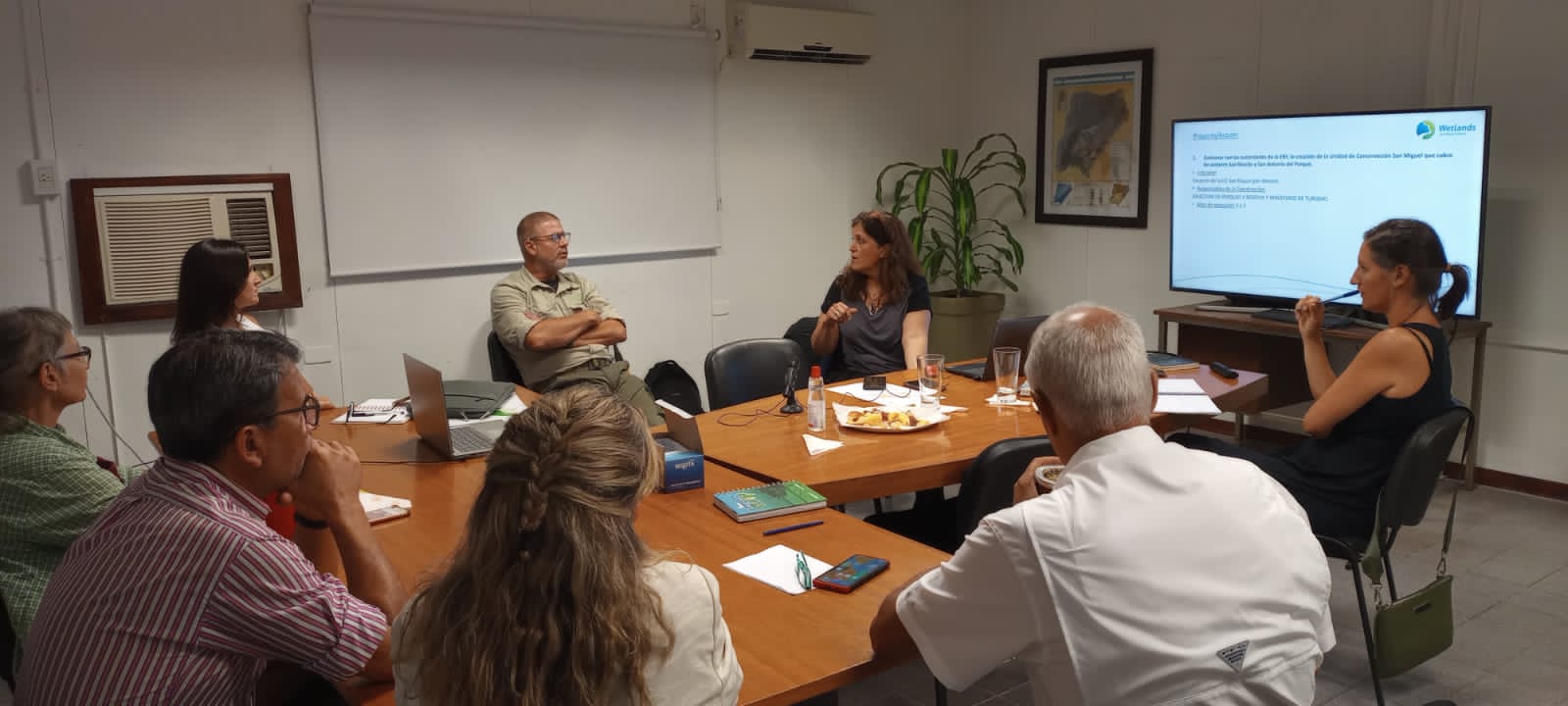 Participaron de la reunión de manera presencial, la Ministra de Turismo, Alejandra Eliciri; la consultora del equipo de Revisión del Plan de Gestión, Paula Bertolini; de la Fundación Cambio Democrático, María Colombres; de la Entidad Binacional Yacyretá, Diego Pérez; Dirección de Parques y Reservas, Fernando Laprovitta y Bernardo Holman; del Comité Iberá, Marisi López; de Wetlands International, Nadia Boscarol, del ICAA, Mario Salvia, Carolina Sartirana y Solange Martínez.