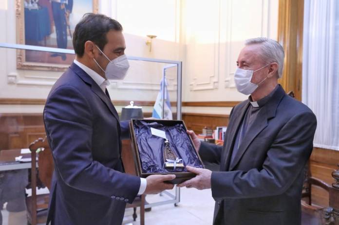 En la oportunidad, además, el Gobernador obsequió al Arzobispo, la imagen de la Virgen de Itatí, tallada en madera.