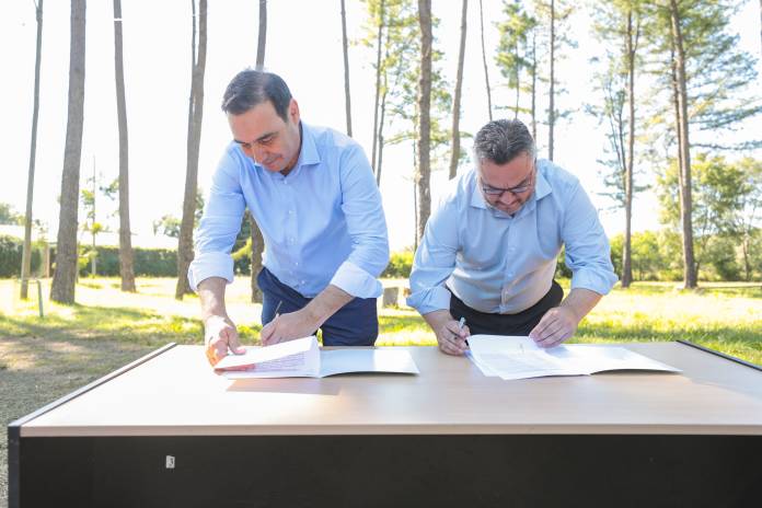 Gustavo Valdés firmó dos convenios junto al intendente de Monte Caseros, Juan Carlos Álvarez,  para desarrollar la infraestructura urbana y reforzar la seguridad vial de la misma ciudad. El acuerdo fue rubricado en el marco de las actividades provinciales realizadas en el Centro de Conservación “Aguará”, este martes.