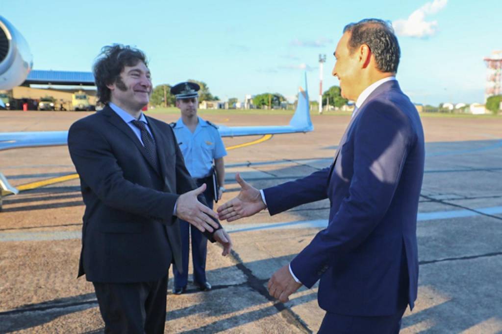 El presidente de la Nación, Javier Milei arribó este lunes a las 19 al aeropuerto internacional Piragine Niveyro de la ciudad de Corrientes. Allí lo recibió el gobernador Gustavo Valdés acompañado por el intendente de la Capital provincial, Eduardo Tassano, quienes le entregaron al jefe de Estado, declaraciones de Huesped de Honor, mediante los respectivos decreto y resolución municipal.