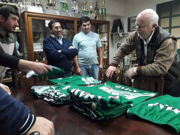 El jefe comunal goyano asistió a la entidad deportiva, oportunidad que se exhibió la nueva indumentaria adquirida con un aporte que realizó la Municipalidad de Goya.
