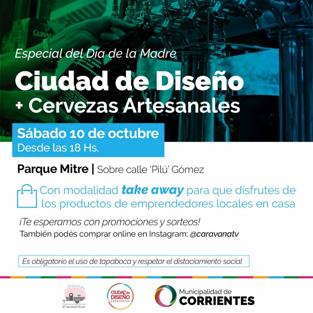 La Municipalidad de Corrientes realizará este sábado una actividad con la presencia de emprendedores que forman parte de los programas Ciudad de Diseño y Patio Cervecero en el parque Mitre. Será de 18 a 23 y con todas las normas de seguridad e higiene dispuestas por la pandemia del coronavirus.
