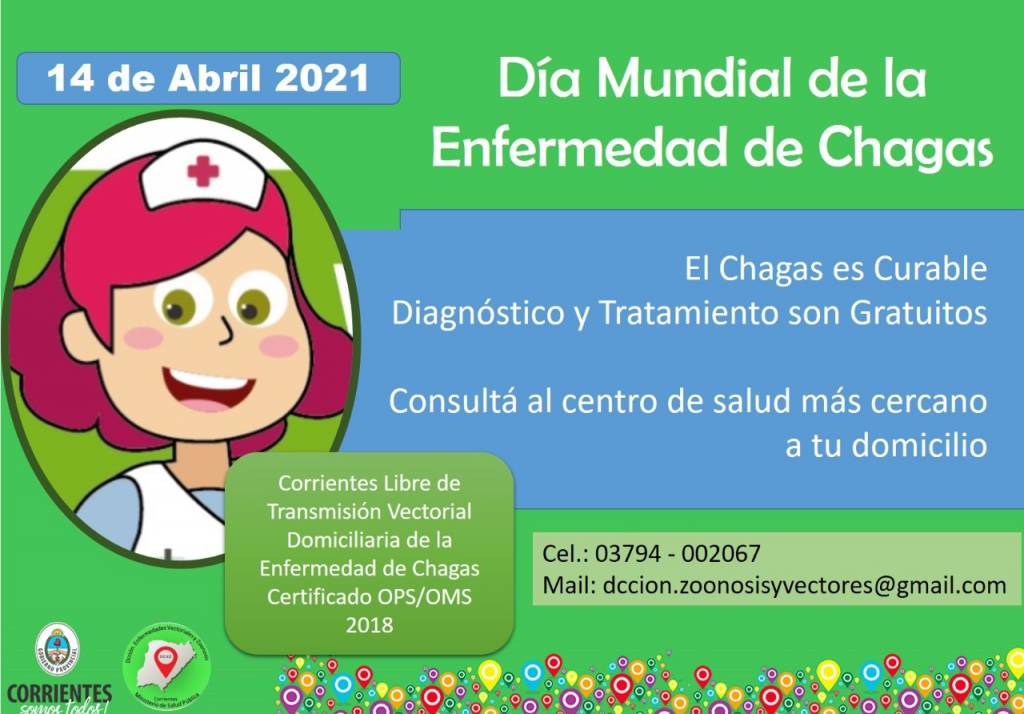 Este miércoles 14 de abril se conmemora el Día Mundial de la Enfermedad de Chagas y por tal motivo, desde el Ministerio de Salud Pública de la Provincia a través de la Dirección de Enfermedades Vectoriales y Zoonosis, se busca dar visibilidad a las personas que la padecen, como así también sensibilizar sobre la problemática y los recursos necesarios para prevenir, controlar o eliminarla. Cabe recordar que en 2018, Corrientes logró la Certificación OPS/OMS (Organización Panamericana de la Salud/Organización Mundial de la Salud) Libre de Transmisión Vectorial de Chagas, aunque se continúa trabajando con los controles para mantener el estatus.