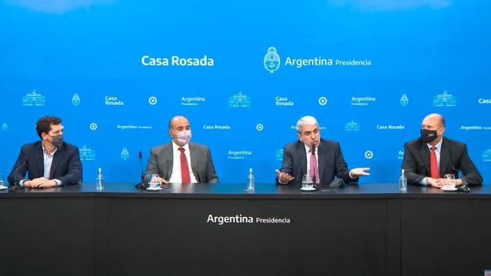 Lo acompañaron el jefe de Gabinete, Juan Manzur; el gobernador de Santa Fe, Omar Perotti; y el ministro del Interior, Eduardo “Wado” de Pedro.