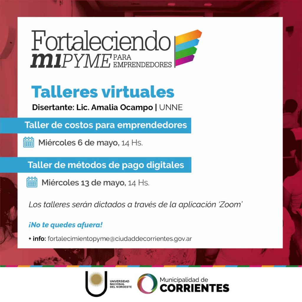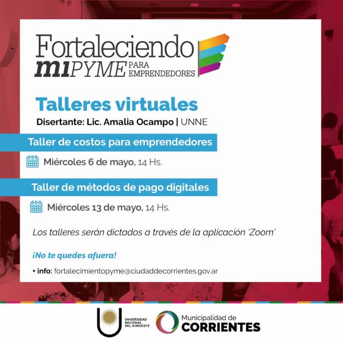 a actividad se llevará adelante este 6 de mayo, desde las 14, a través de la aplicación Zoom, y es organizada por la Secretaría de Desarrollo Económico del municipio junto a la Facultad de Ciencias Económicas de la Universidad Nacional del Nordeste. El 13 de mayo se abordará el tema “Metodos de pago digitales”. Las inscripciones continúan abiertas.