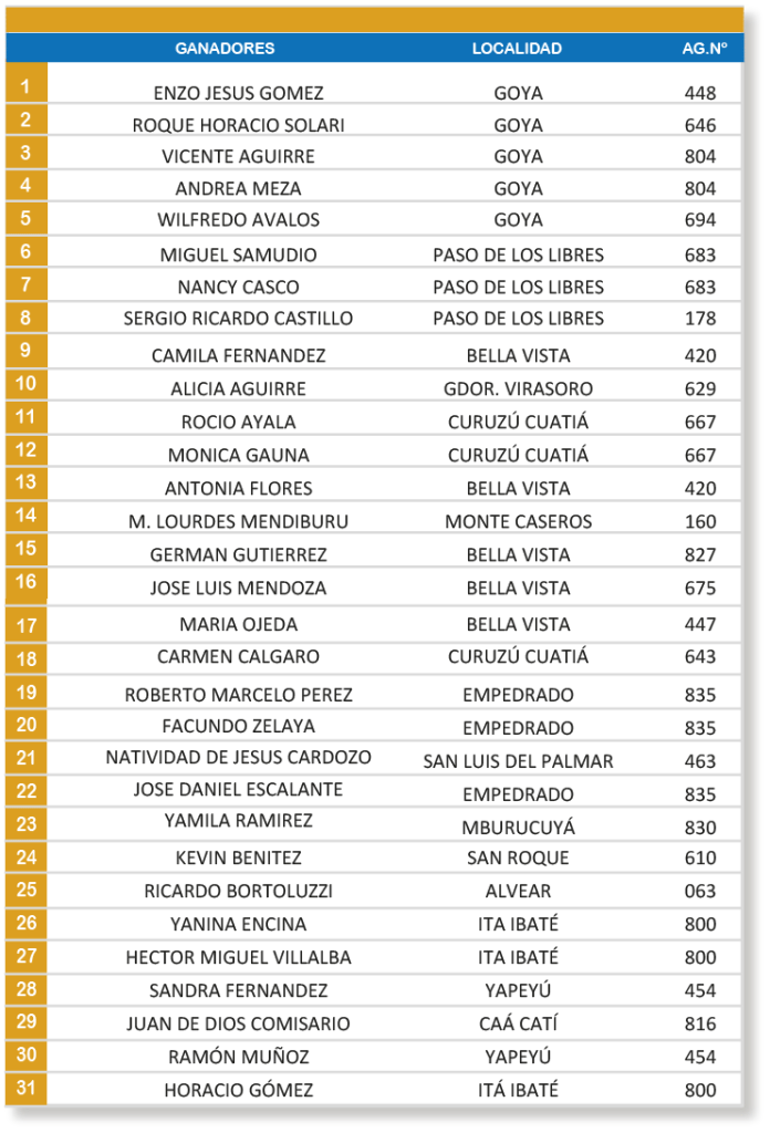 Acá te dejamos la lista completa de ganadores del SORTEO DE CUPONES NO PREMIADOS de este mes, para las localidades del Interior. Del Sorteo realizado el 28/08 a las 14.30 hrs