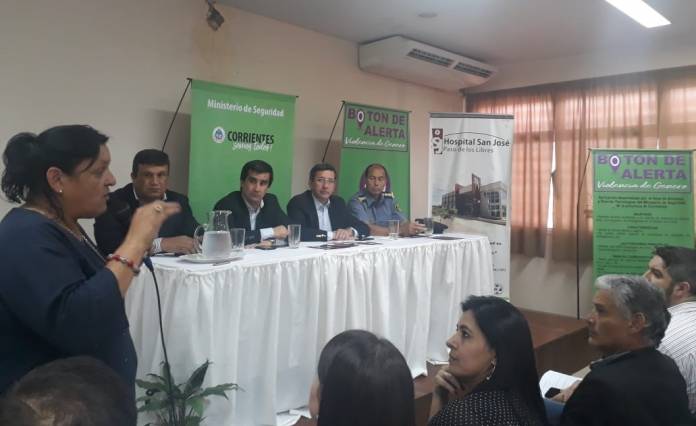 En el Salón de Usos Múltiples del Hospital San José de Paso de los Libres se llevó a cabo la presentación del Botón de Alerta para víctimas de violencia de género. La ceremonia estuvo presidida por el ministro de Seguridad Juan José López Desimoni, quien estuvo acompañado por el director general de Coordinación e Interior, comisario general Fausto Domínguez; el subsecretario de Seguridad Ciudadana, Jorge Benítez Sívori; el responsable de Sistemas y Nuevas Tecnologías del Ministerio de Seguridad, Félix Espinoza; y la coordinadora del Centro de Monitoreo de Víctimas de Violencia de Género, Claudia Romero Valdés.
