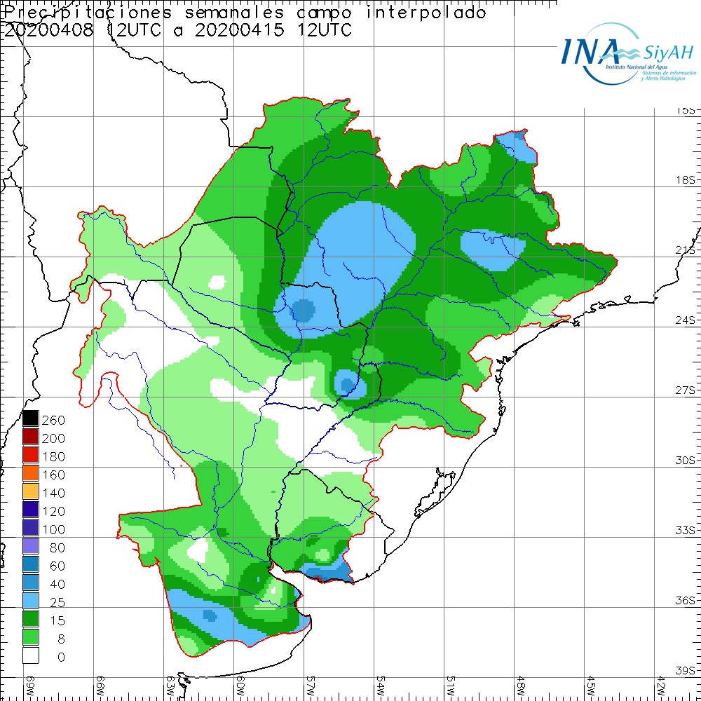 Así lo señala el informe del Instituto Nacional del Agua (INA) publicado por el Instituto Correntino del Agua del Ambiente (ICAA) en su sitio: web www.ica.gov.ar en el que se destaca la perspectiva en la Cuenca del Plata; la semana próxima no se esperan precipitaciones significativas producto del ingreso de un sistema de altas presiones, a excepción de las nacientes del río Paraná.