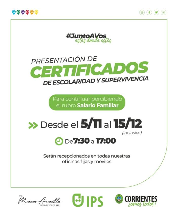 Además, quienes deseen emitir certificaciones vía web deben ser en formato PDF, con la firma digital o código QR a beneficiarios.ips@corrientes.gob.ar.