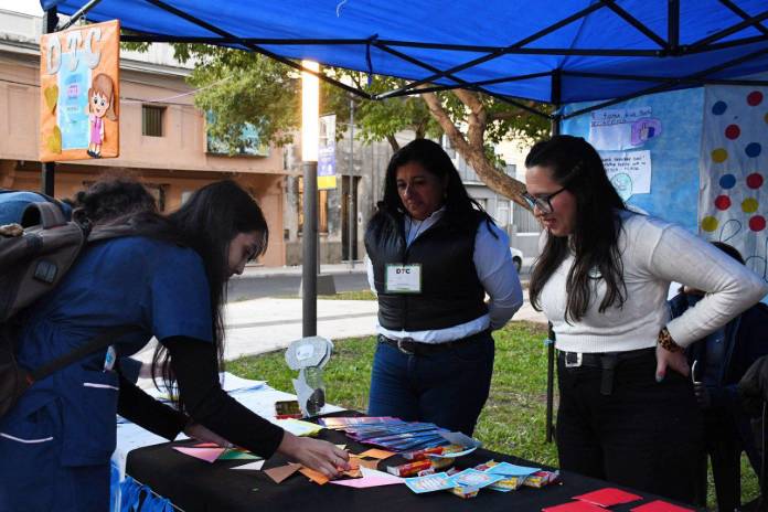 Durante la actividad, jóvenes que asisten al DTC presentaron parte de las tareas que realizan cotidianamente en ese espacio, que cuenta con un equipo multidisciplinario compuesto por psicólogos, trabajadores sociales y talleristas. Además, se instalaron stands educativos, juegos lúdicos y se repartieron dulces y folletos informativos para atraer a los transeúntes.