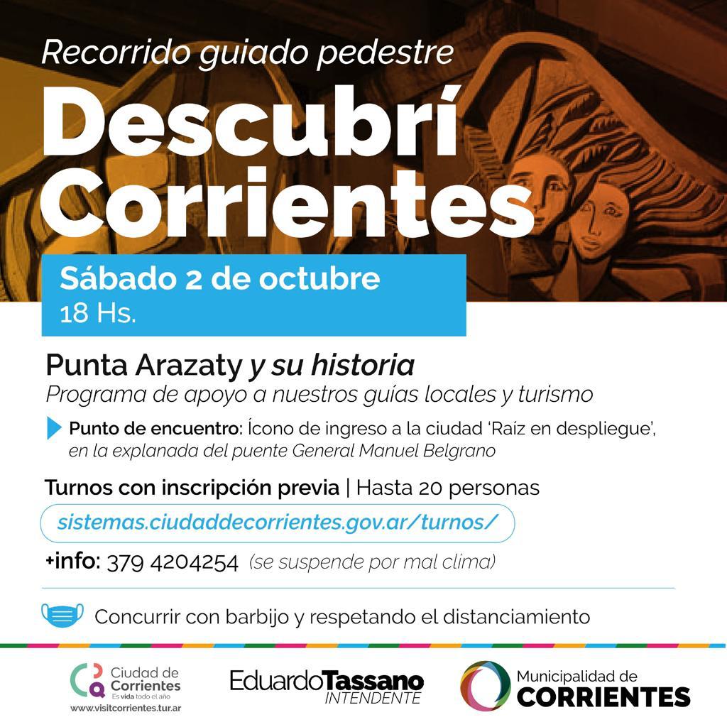 “Esta se convierte en una excelente oportunidad para invitar a vecinos y turistas para que puedan conocer la rica historia de Corrientes a través de nuestros guías locales y personal de promoción turística del municipio quienes responderán además todas las preguntas que surjan en el recorrido”, indicó el subsecretario de Turismo del municipio capitalino, Juan Pedro Picasso.