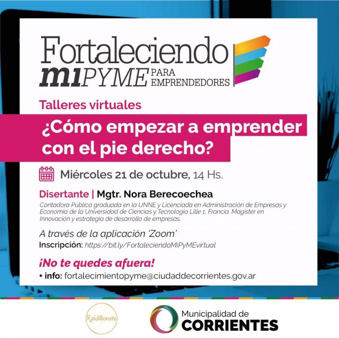 En el marco de las continuas capacitaciones destinadas a emprendedores, la Municipalidad de Corrientes organizó este miércoles un taller sobre cómo iniciar un emprendimiento de manera exitosa. El encuentro será a las 14, a través de la plataforma Zoom.