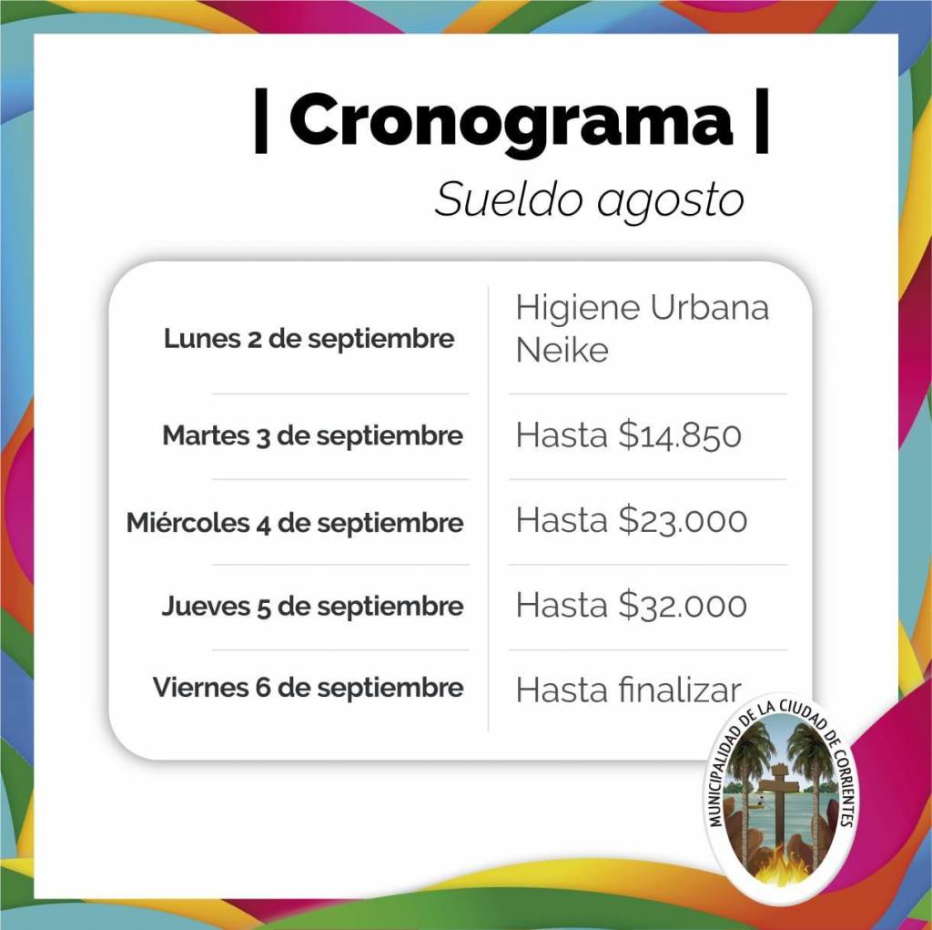 El ejecutivo del municipio capitalino informó que mañana lunes 2 de septiembre comienza el pago de haberes a los empleados municipales.