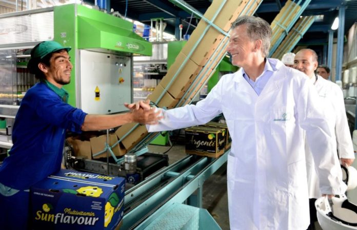 Mauricio Macri, en la visita a una cooperativa en Tucumán. Argentina despachó hoy su primer embarque de limones con destino a Estados Unidos en 17 años. (Foto Presidencia)