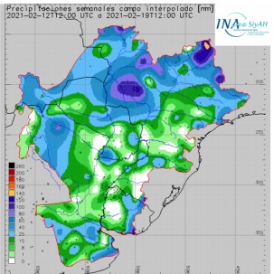 El Instituto Correntino del Agua y del Ambiente (ICAA) publicó el informe semanal del Instituto Nacional del Agua (INA) emitido el 21 de febrero, según datos del Servicio Meteorológico Nacional (SMN); persistirá el marco de lluvias acotadas durante la próxima semana. Sólo se esperan lluvias sobre el extremo noreste en la tarde / noche del día miércoles. Se interpreta que no se acumularían montos significativos. Para la mitad norte de la Cuenca del Plata no se esperan eventos importantes.