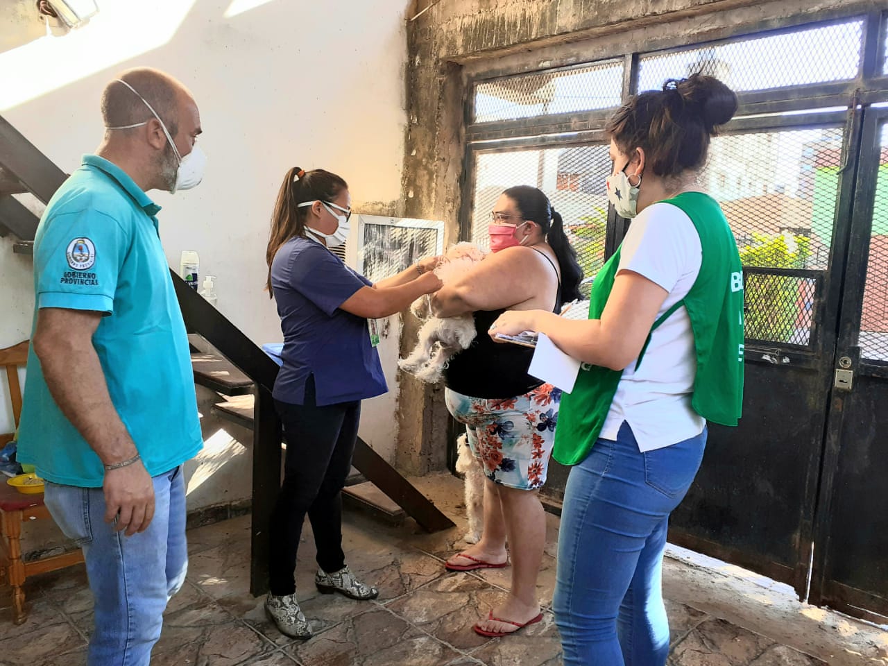 Esta semana, la tarea se realiza en el barrio San Benito, la anterior, fue el turno del Arazatý. Control focal y concientización, son los ejes de la intervención. Además, se hace vacunación antirrábica a mascotas.