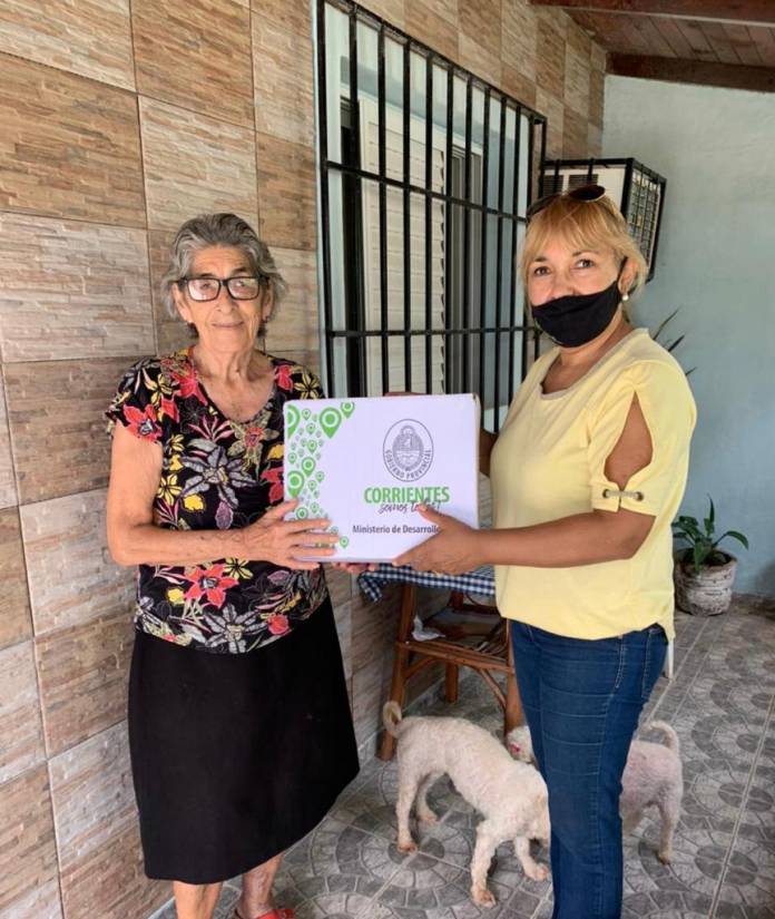 Por otra parte también una adulta mayor, fue beneficiada con cajas de alimentos, para hacer frente a la difícil situación que se atraviesa actualmente con la pandemia.