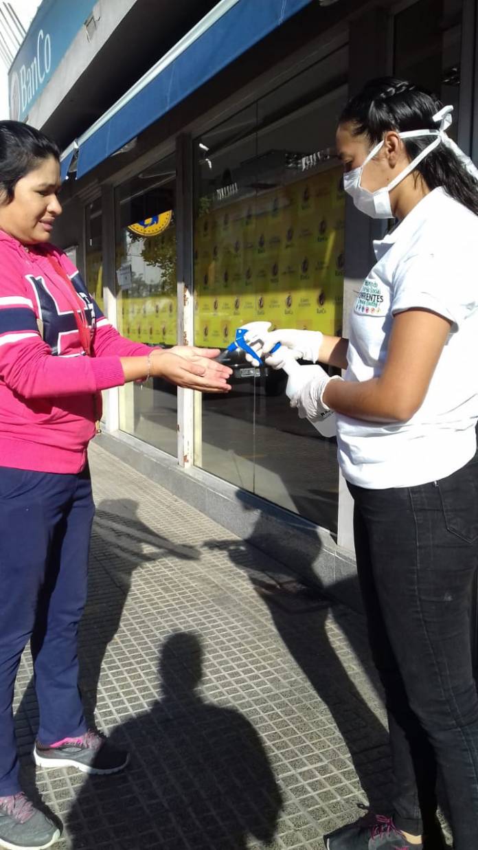 Al público se les proporcionó de elementos de seguridad (barbijos, guantes, satinizador), a su vez, se les hizo entrega de agua mineral , garantizando también el cuidado de la distancia en las filas. Logrando así limpieza y desinfección de los cajeros automáticos ,lugar muy propenso al virus.