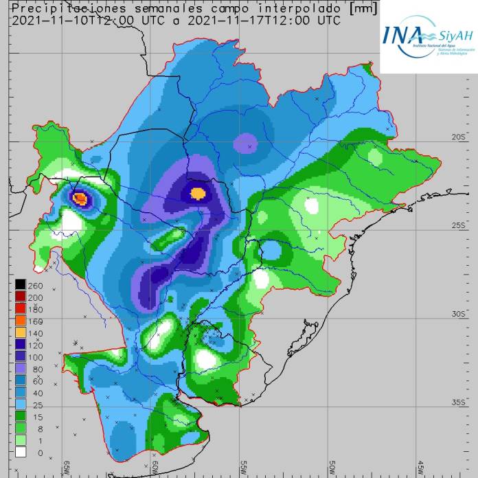 El río Paraná en territorio argentino continúa en bajante extraordinaria durante la última semana se registraron precipitaciones intensas sobre el tramo superior alcanzando los 80 milímetros semanales, sobre el tramo inferior se registraron precipitaciones aisladas del orden de los 40 milímetros.