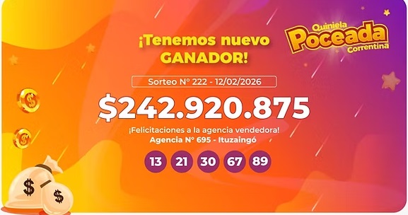 La fortuna volvió a golpear la puerta en el interior provincial. En el último sorteo de la Quiniela Poceada Correntina, un apostador de Ituzaingó se llevó un premio extraordinario de $242.920.875, tras acertar los cinco números que definieron el pozo acumulado.