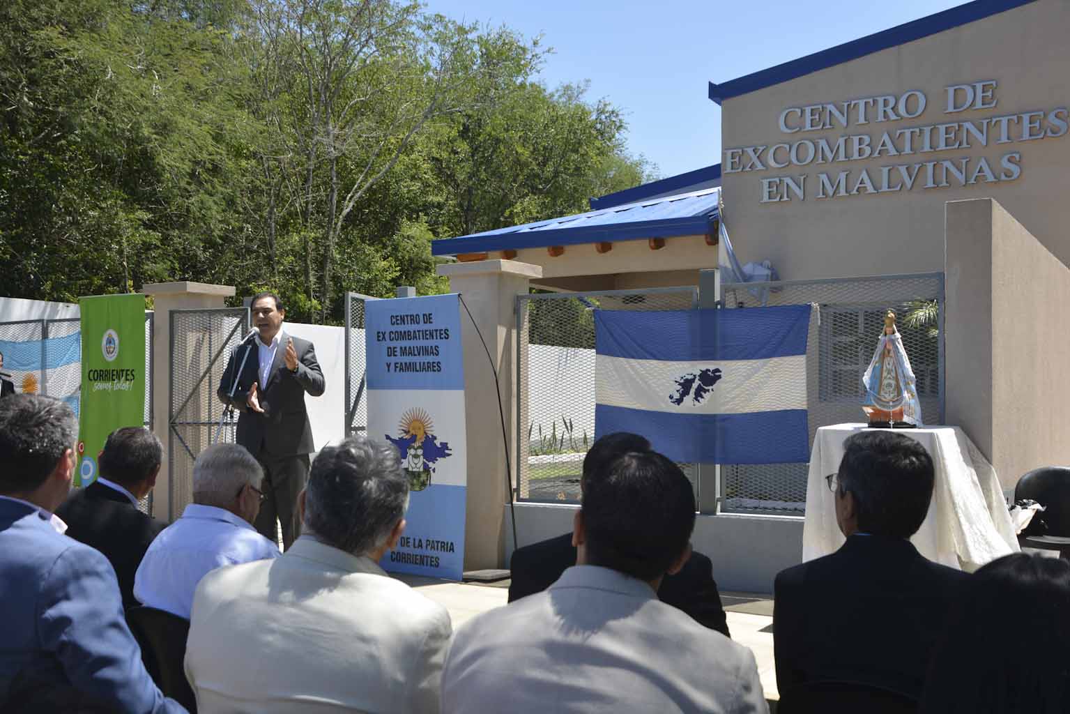 Esta mañana el gobernador de la provincia, Gustavo Valdés, encabezó el acto de inauguración del Centro de Ex Combatientes de Malvinas de Paso de la Patria, oportunidad en la que expresó su categórico respaldo a la causa Malvinas, y a los que participaron en la contienda bélica, respecto de lo que expresó: “Son soldados que siguen combatiendo, son el testimonio vivo, de aquel acontecimiento ocurrido en 1982, y que desde entonces los tiene como protagonistas, y se puede decir con certeza que lo de Malvinas es uno de los temas que cuenta con unanimidad de apoyo en la Argentina, es algo en que con matices, pero en lo que todos estamos de acuerdo”. El mandatario adelantó que en cada lugar del interior se hará un Centro, se están trabajando en dos ahora, y luego se irán agregando nuevas instituciones en la medida que se vayan concretando los proyectos. Asimismo, destacó de manera muy clara el gesto del vecino de la localidad Juan Miguel Vallejos –quien se desempeñó como personal de cuadro- que donó el terreno para que se construya el edificio de los ex combatientes, como también felicitó al presidente de la institución local Epifanio Alvídes y el titular de la Dirección Malvinas Argentinas José Galván, por el trabajo de reivindicar de manera permanente a su camaradas y mantener viva la causa Malvinas en la comunidad correntina.