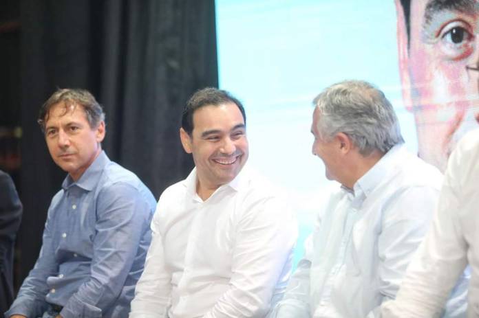 El Gobernador de Corrientes en una jornada en que concretó una serie de visitas de trabajo a municipios del norte santafesino, ocasión en que suscribió convenios con los jefes comunales y compartió encuentros con empresarios, dejando entrever que busca articular oportunidades regionales para la provincia y encaminar la puesta en marcha del radicalismo y Juntos en pos de una opción política que lleve a la Argentina a ser un país más justo y equitativo, clausuró la jornada con el cierre de campaña de los candidatos santafesinos de Juntos Carolina Losada y Dionisio Scarpín para senadores y los propuestos para diputados Mario Barletta y Victoria Tejeda respectivamente, lo hizo acompañado por su par de Jujuy Gerardo Morales y dirigentes del sector de la región. Valdés al respecto sostuvo expresó: “Compartimos el cierre de campaña con Gerardo Morales y los mejores candidatos que tiene Santa Fe”.