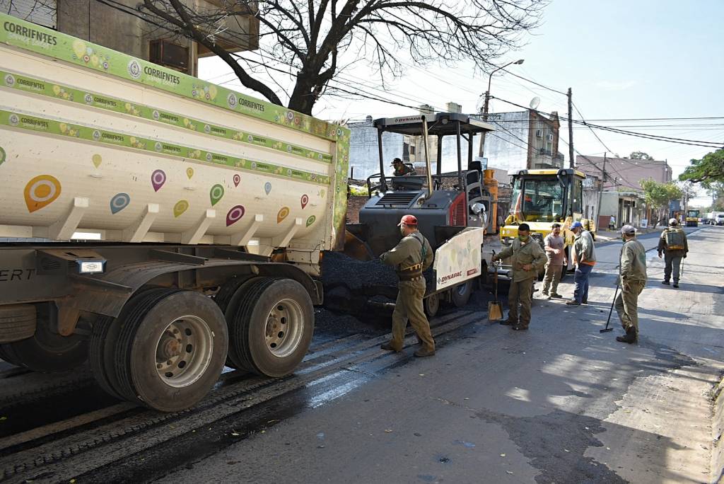 La Provincia comenzó hoy con los trabajos propiamente dichos de repavimentación con concreto asfáltico de la calle San Martín, entre av. Artigas y calle España, tras finalizar similares obras en calle Jujuy entre las avenidas Ferré y Gobernador Ruiz.