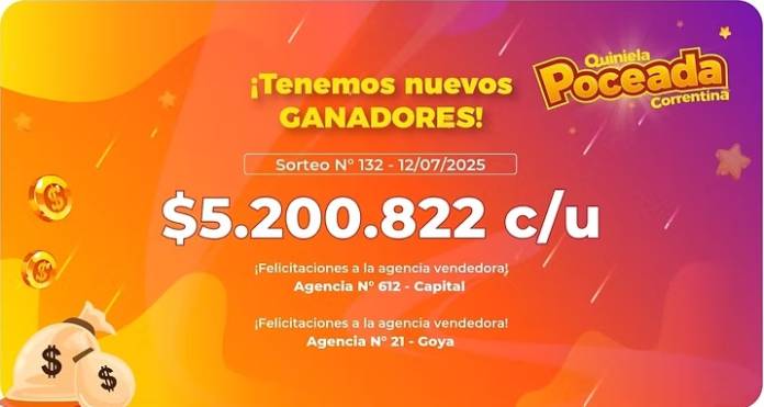 Los cupones ganadores fueron jugados en las agencias oficiales N°612 de Capital y N°21 de Goya, respectivamente. Cada uno de los afortunados se llevó un premio de $5.200.822, demostrando que el juego sigue premiando a quienes confían en el azar oficial.