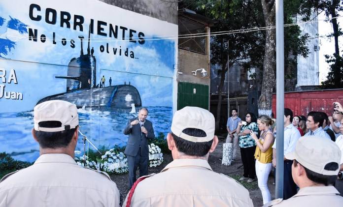 “Hoy es un día de conmemoración, de homenaje y recuerdo a estos 44 submarinistas de los cuales hace un año no tenemos noticia de ellos. Este mural y la plazoleta es una demostración de que Corrientes no los olvida”, resaltó el concejal José Romero Brisco, autor de la ordenanza que posibilita la creación de este espacio público.