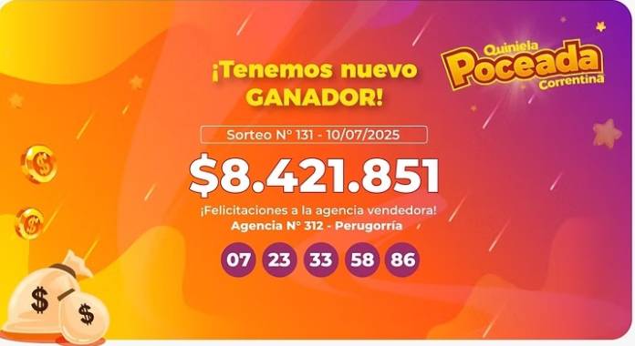 El cupón de la suerte fue vendido en agencia oficial N°312 de esa misma localidad* y los números acertados fueron 07- 23 – 33 – 58 – 86.