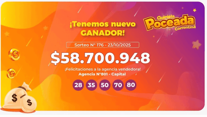 La suerte volvió a sonreír en Corrientes Capital. En el sorteo del pasado jueves, un apostador logró acertar los cinco números de la Quiniela Poceada Correntina y se llevó un premio de $58.700.948, sumándose así a la lista de ganadores que el juego viene registrando en distintos puntos de la provincia.
