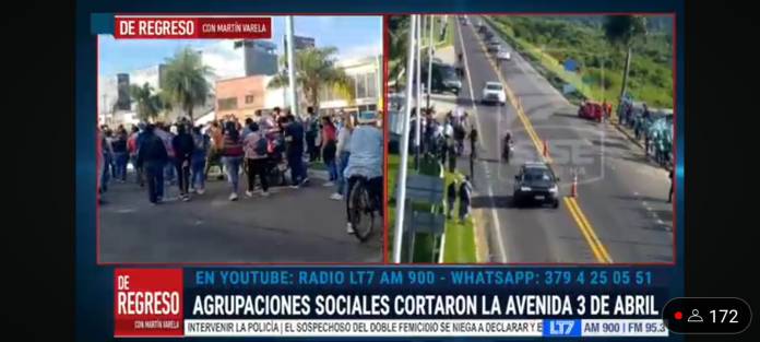 Similar situación se vive en la zona del barrio San Pedro pescador, ubicado en el extremo chaqueño del viaducto, donde manifestantes llegaron caminando desde la zona del peaje.