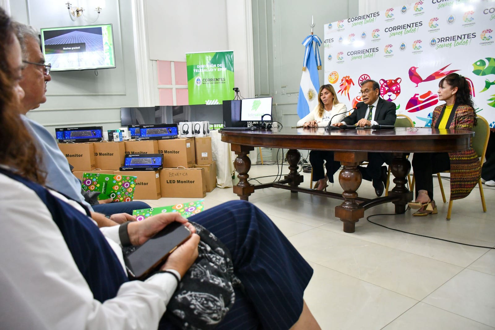 En la jornada, se entregaron computadoras equipadas con auriculares, micrófonos, monitores y webcams al Hospital Escuela de Capital, los de Isla Apipé, Concepción, Bella Vista, Ituzaingó, Pediátrico de Goya, Pellegrini, Esquina, Curuzú Cuatiá, Berón de Astrada, el Dispensario Dermatológico, consultorios virtuales del Ministerio de Salud y el Centro de Genética.