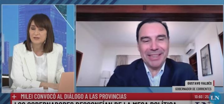 El gobernador Gustavo Valdes dijo que estará en el encuentro organizado por el espacio Provincias Unidas en Rio Cuarto (Córdoba), analizó el resultado electoral en Buenos Aires y la realidad del pais en una entrevista por elcanal La Nación+.